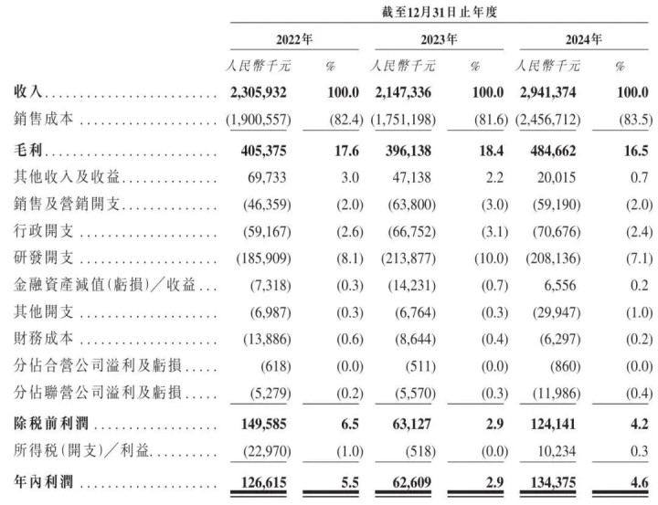 美格智能2022年、2023年、2024年年内利润分别为1.27亿元、6261万元、1.34亿元;经调整净利分别为1.35亿元、6539万元、1.45亿元。