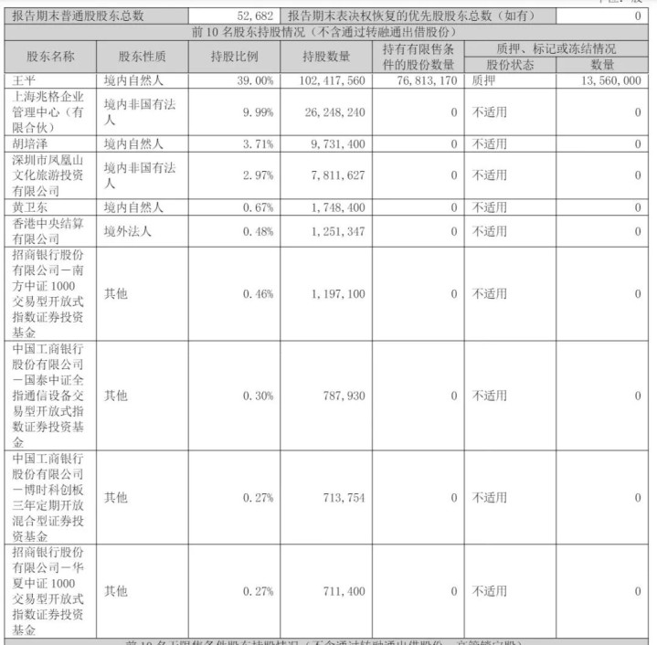 截至2025年9月30日,王平持股为39%,上海兆格企业管理中心(有限合伙)持股为9.99%,胡培泽持股为3.71%,深圳市凤凰山文化旅游投资有限公司持股为2.97%。