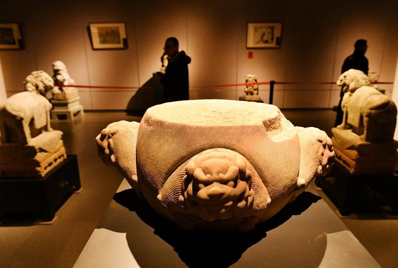 1月20日,市民与游客在“百狮献瑞”石刻艺术展上参观。苑立伟摄1月20日,“百狮献瑞”——中华历代石刻艺术展在河北省沧州市博物馆拉开帷幕。