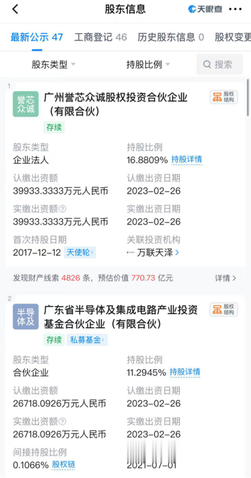 天眼查信息显示,粤芯半导体主要股东包括誉芯众诚、广东半导体基金、广州华盈、科学城集团、国投创业基金、合肥华登等投资机构。